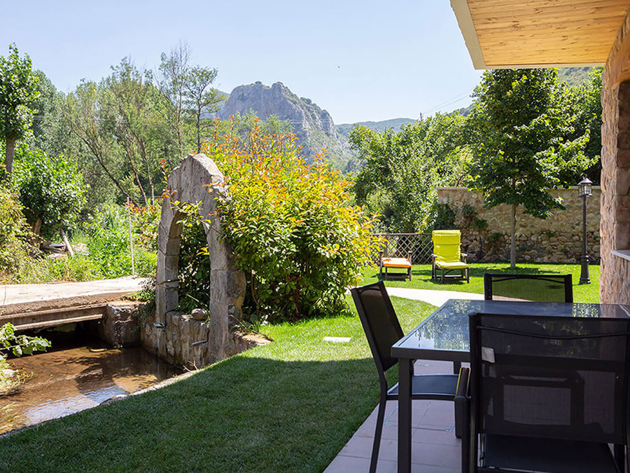 Zona común de nuestro complejo que pueden disfrutar todos nuestros visitantes. En su centro convertimos una piedra del Molino del Moro en una mesa para uso de los huéspedes.