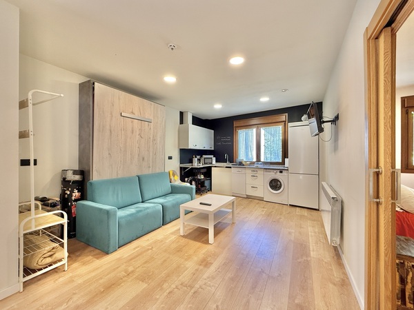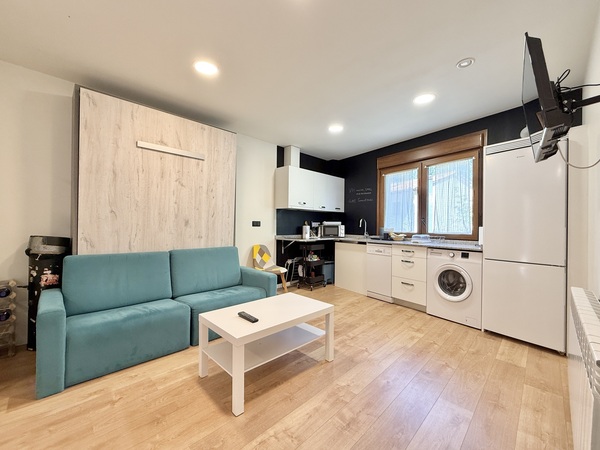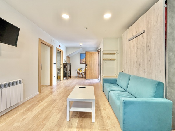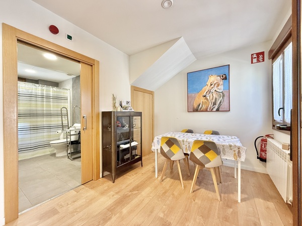 Dispone de un amplio salón comedor con cocina americana completamente equipada y adaptada para usuarios de silla de ruedas, así como electrodomésticos accesibles para personas con discapacidad visual. El comedor cuenta también con una cama abatible de 150x200 cm para un mejor descanso.