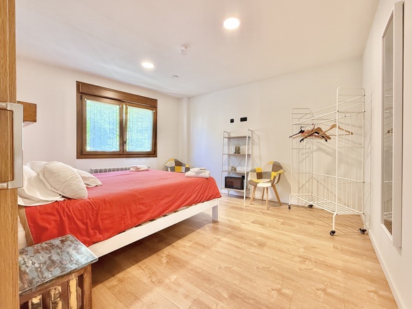 La amplia habitación, con óptima movilidad para personas usuarias de silla de ruedas, ofrece detalles como contraste cromático entre el mobiliario y las paredes para personas con baja visión, y está equipada con cama de 180x200 cm o dos individuales.