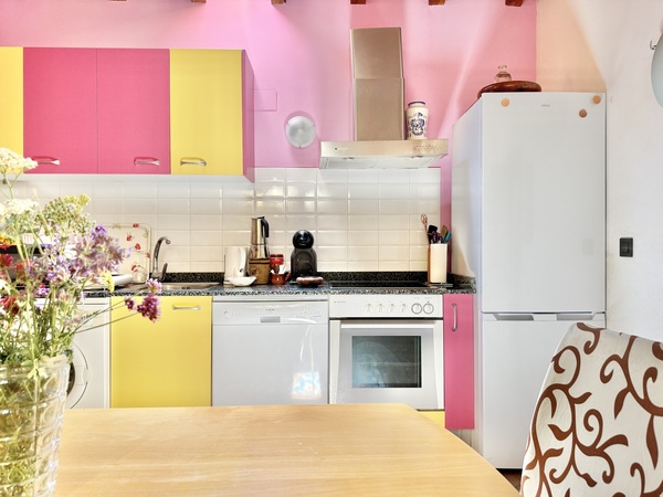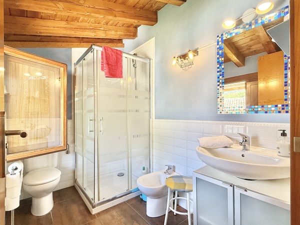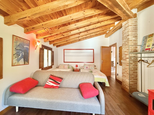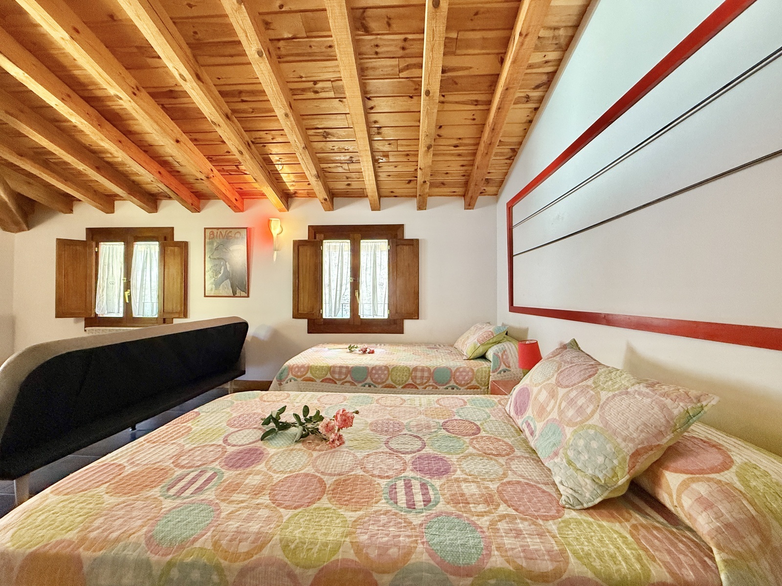 Has three junior-suites, slanted roof bedrooms with TV and individual bathrooms. Each room sleeps 3-4 people. The full kitchen is colorful and whimsical, spacious and most comfortable for gatherings around the table.