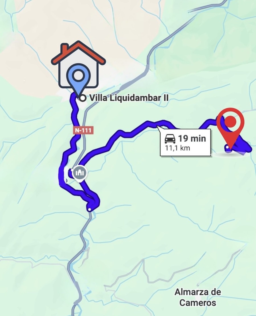 Desde Madrid, solo tienes que tomar la Nacional 111 dirección Soria. En el km 298 verás el desvío hacia Finca Ribavellosa, y unos metros más adelante, el acceso a Torrecilla en Cameros. Si estás alojado en Casa Rural Villa Liquidámbar, el desvío está a tan solo 2 km, en dirección Soria.